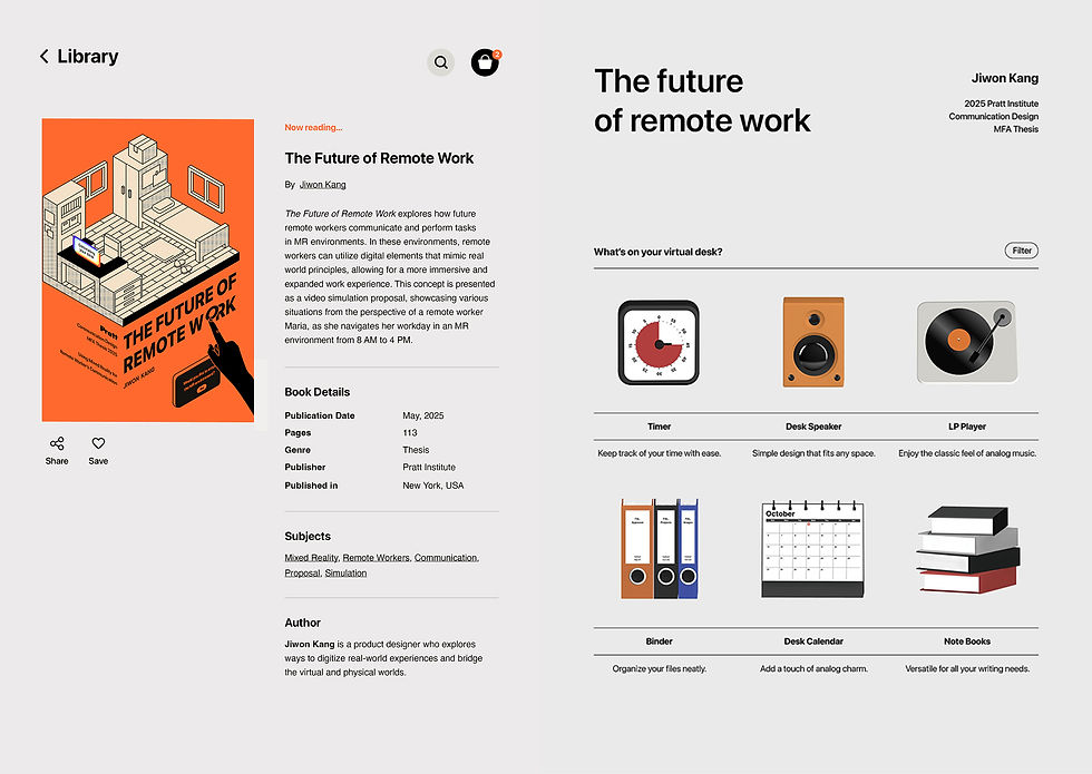 The thesis was exhibited at the 2025 Pratt Show. You can find more details about the project at www.jiwonkang.com/the-future-of-remotework